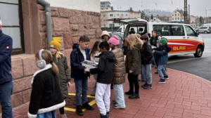 Nachdem alle Päckchen sorgfältig verpackt und im Transporter verstaut waren, erhielten die Kinder einen kleinen Rückblick auf den letzten Transport – inklusive Bildern und Eindrücken aus Rumänien. Anschließend lernten sie, welche Gefahren von zugefrorenen Gewässern ausgehen, wie man sich darauf richtig verhält und wie man sich im Ernstfall selbst retten kann.