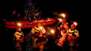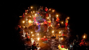 Rund 35 Taucher nahmen teil, darunter auch Rettungstaucher der DLRG. Punkt 18 Uhr stiegen sie mit ihren Fackeln ins Wasser und tauchten die Umgebung in warmes Licht. Der „wasserdichte“ Nikolaus – mit weißem Bart, roter Zipfelmütze und Neoprenanzug – begrüßte die Gäste herzlich. Auf seinem Boot fuhr sogar ein festlich geschmückter Tannenbaum mit. Begleitet wurde das Spektakel vom Ruf: „Fuldawasser, Fuldawasser – hoi, hoi, hoi“.